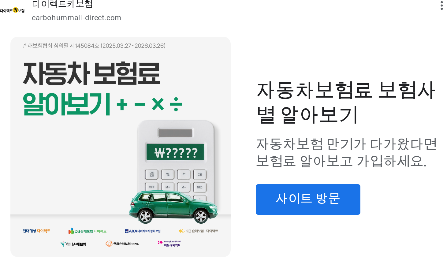 주식회사 애드인슈 google 광고 이미지 광고 이미지 광고 이미지 - 광고 문구: 자동차보험료 한 곳에서 알아보세요. 내 차 보험료 확인해보고 선택하세요. IMAGE 2026-01-08 -